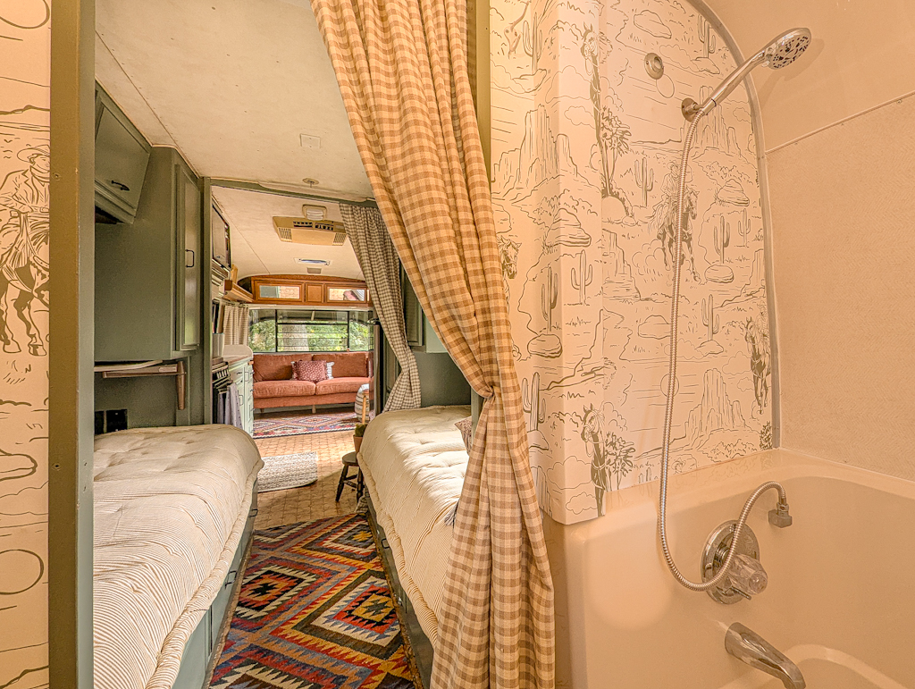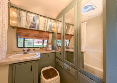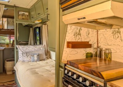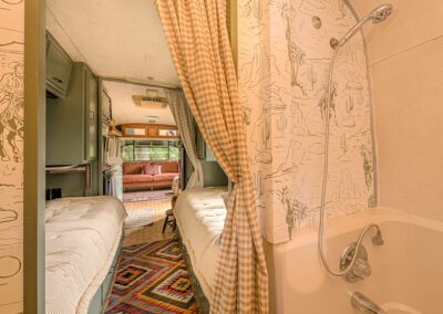 Our vintage* “Cowpoke Camper” has been thoroughly and thoughtfully redesigned, refurbished, and recertified by our in-house experts. Own a stylish lightweight “tiny home on wheels” without the wait and hit the road just in time for Fall “glamping”! (*Originally 1987 Avion by Fleetwood.)